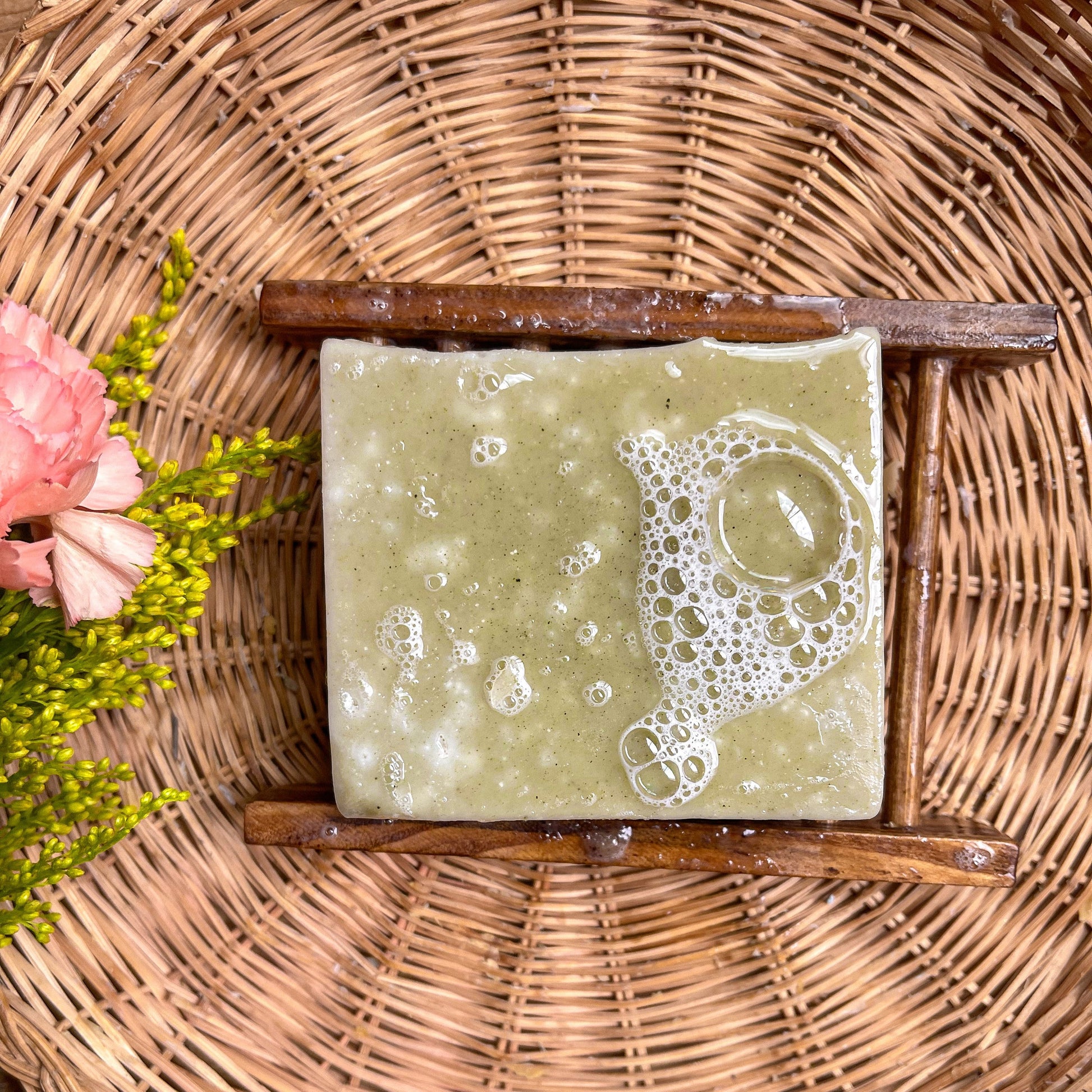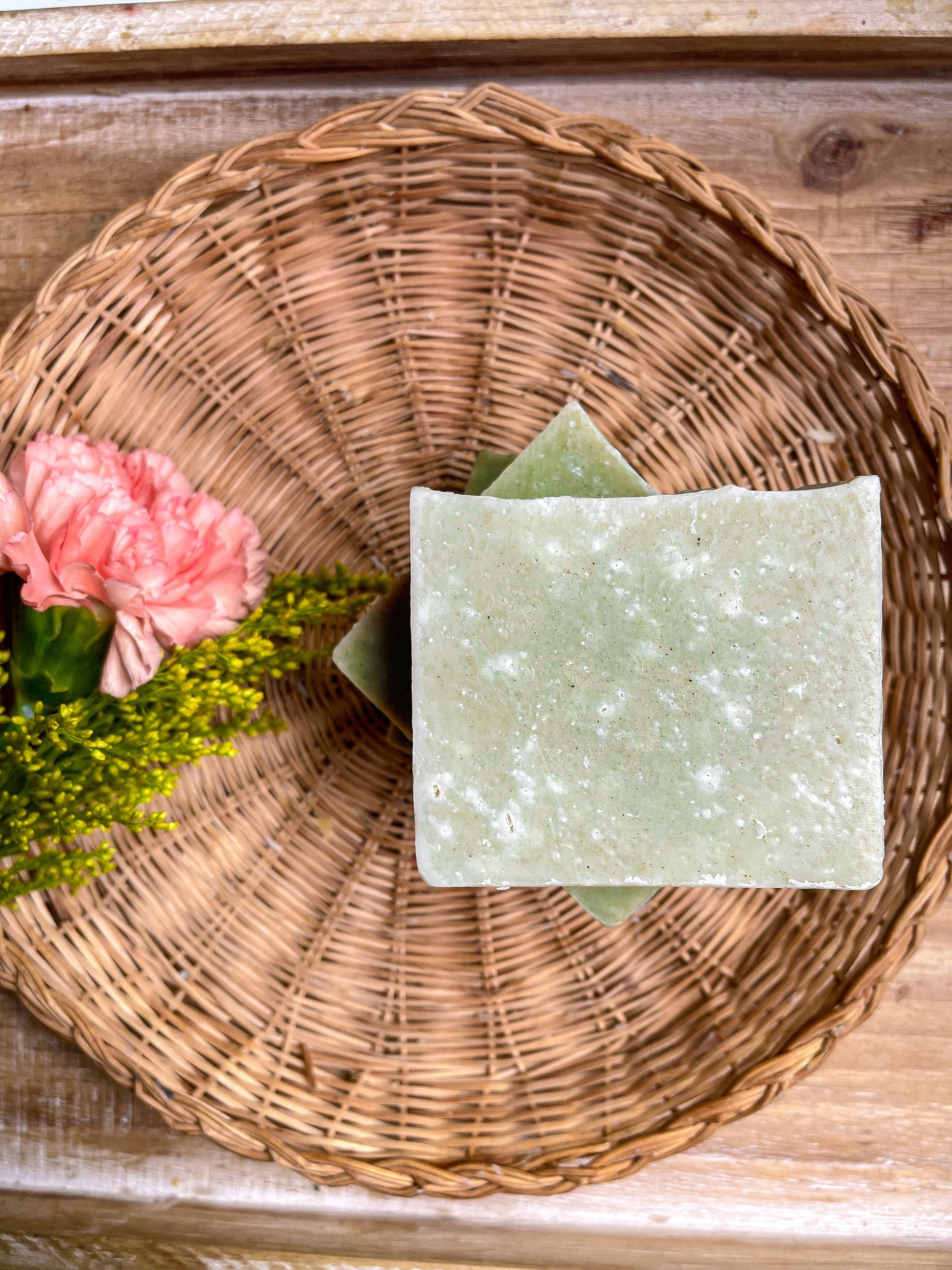 Eucalyptus sea waters was formulated with saponified coconut oil, olive oil, sweet almond oil, sea salt, Himalayan pink salt, Dead Sea clay, chlorophyll powder, kelp powder French green clay, eucalyptus essential oil.